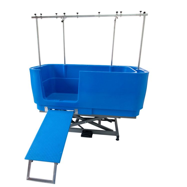 Electric lift allows dog to get in and out of the bath with ease, assisted by the detachable